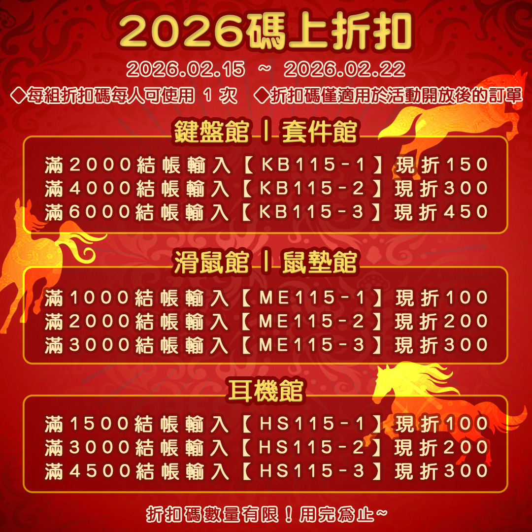 春節現金折扣碼開放,金額越高越多、折越多!