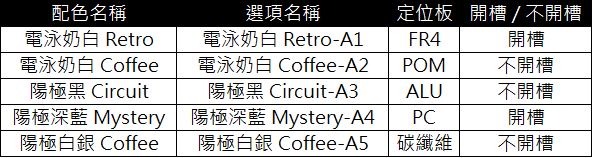 包裝內容物: | 上蓋 下蓋 底部配重 底部銘牌 旋鈕 螢幕模組 軸下墊 夾心棉 底棉 定位板 Gakset組 鍵盤腳墊 螺絲組 ※以下為贈品,如有缺漏破損恕不補發 鍵盤包 螺絲起子 拔鍵/拔軸器 線 |