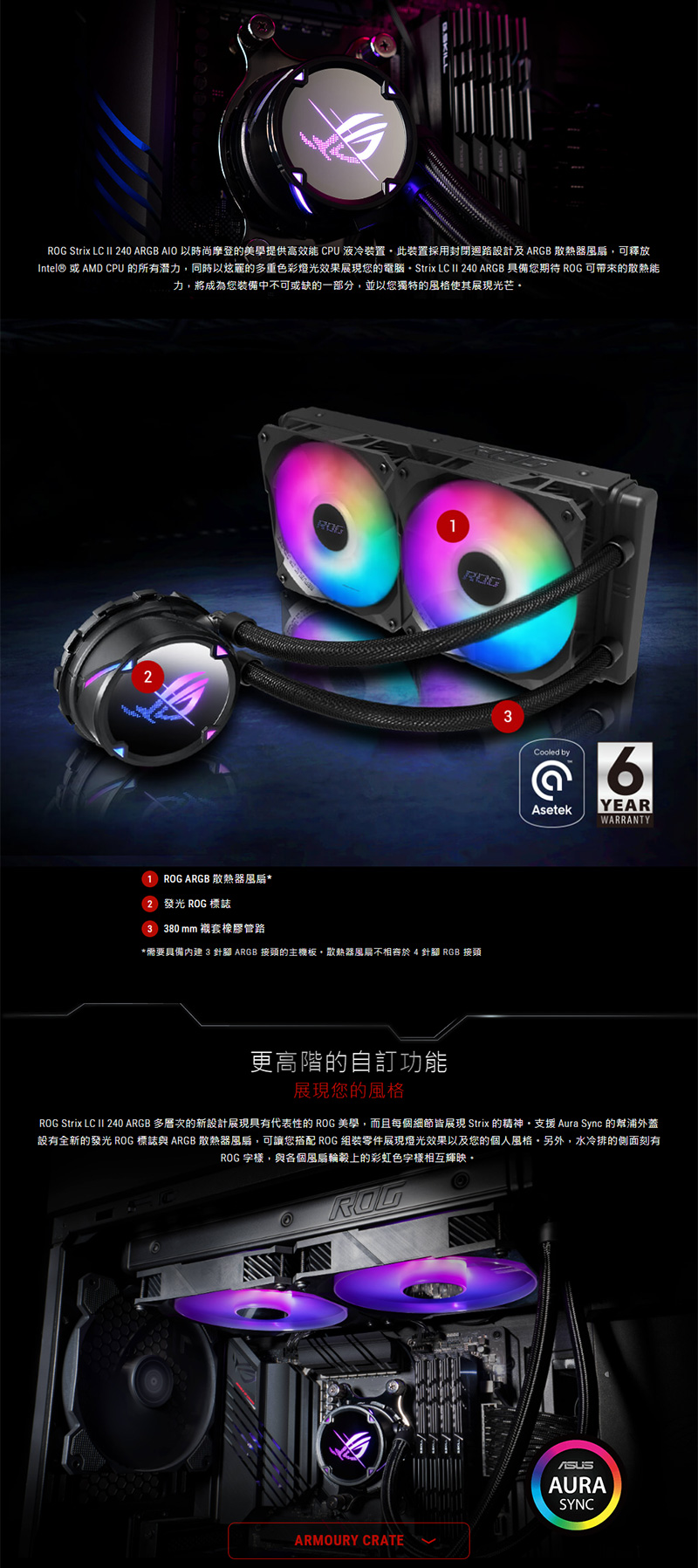 | 品名: | ASUS 華碩 ROG STRIX LC II 240 ARGB 飛龍二代 一體式水冷散熱器 |