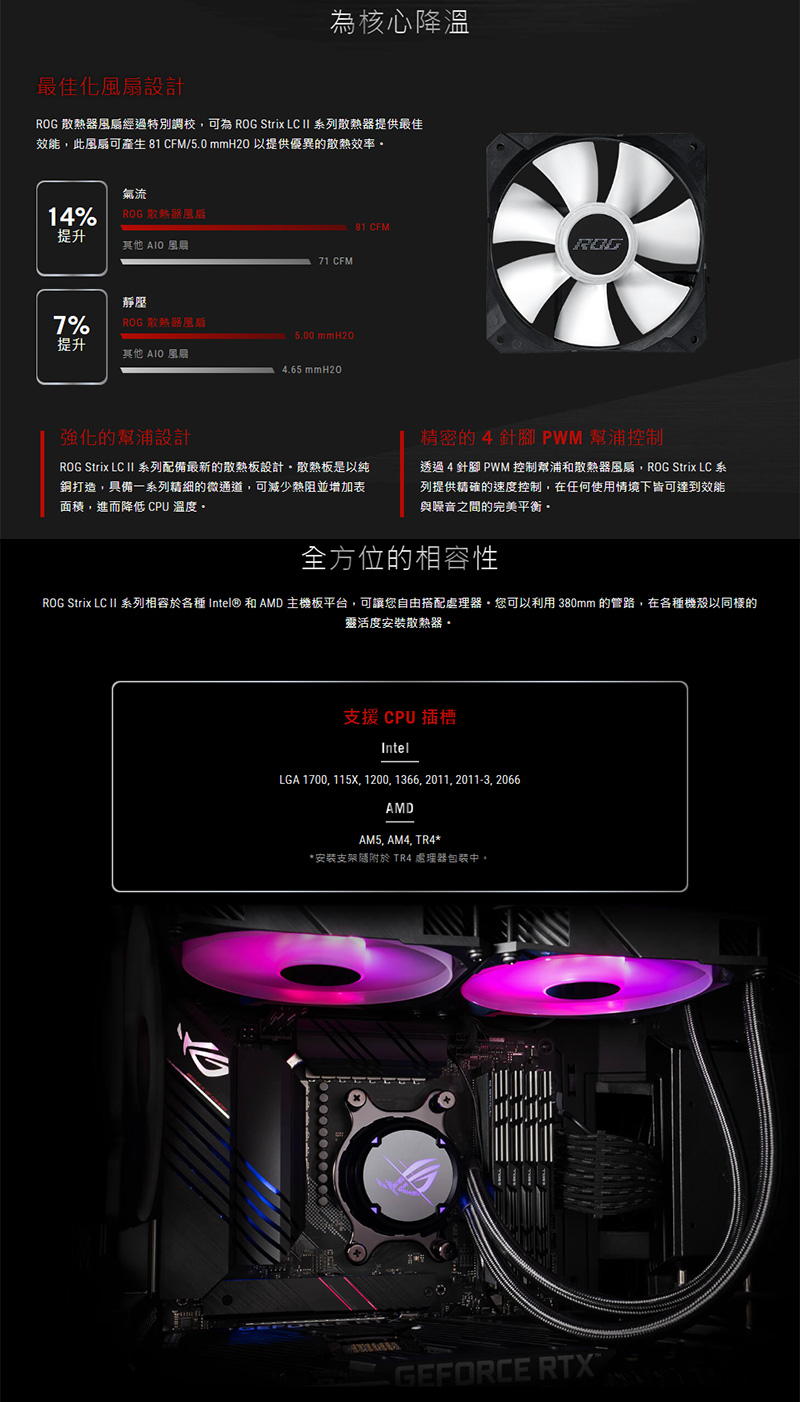 | 備註: | ROG STRIX LC系列 *The mounting bracket is bundled with TR4 CPU Package |