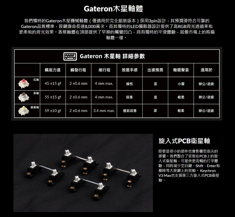 | 壓力克數: | 紅軸:45g 茶軸:55g 香蕉軸:59g |