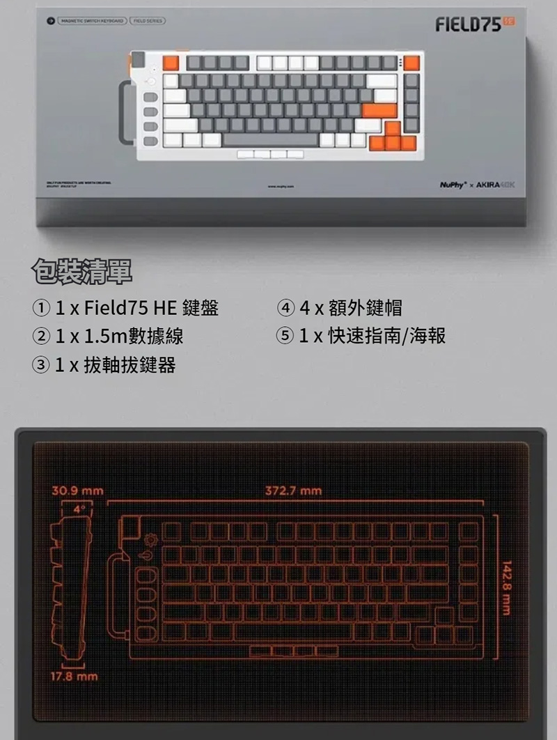 | 品名: | Nuphy Field75 HE 有線磁軸鍵盤 |