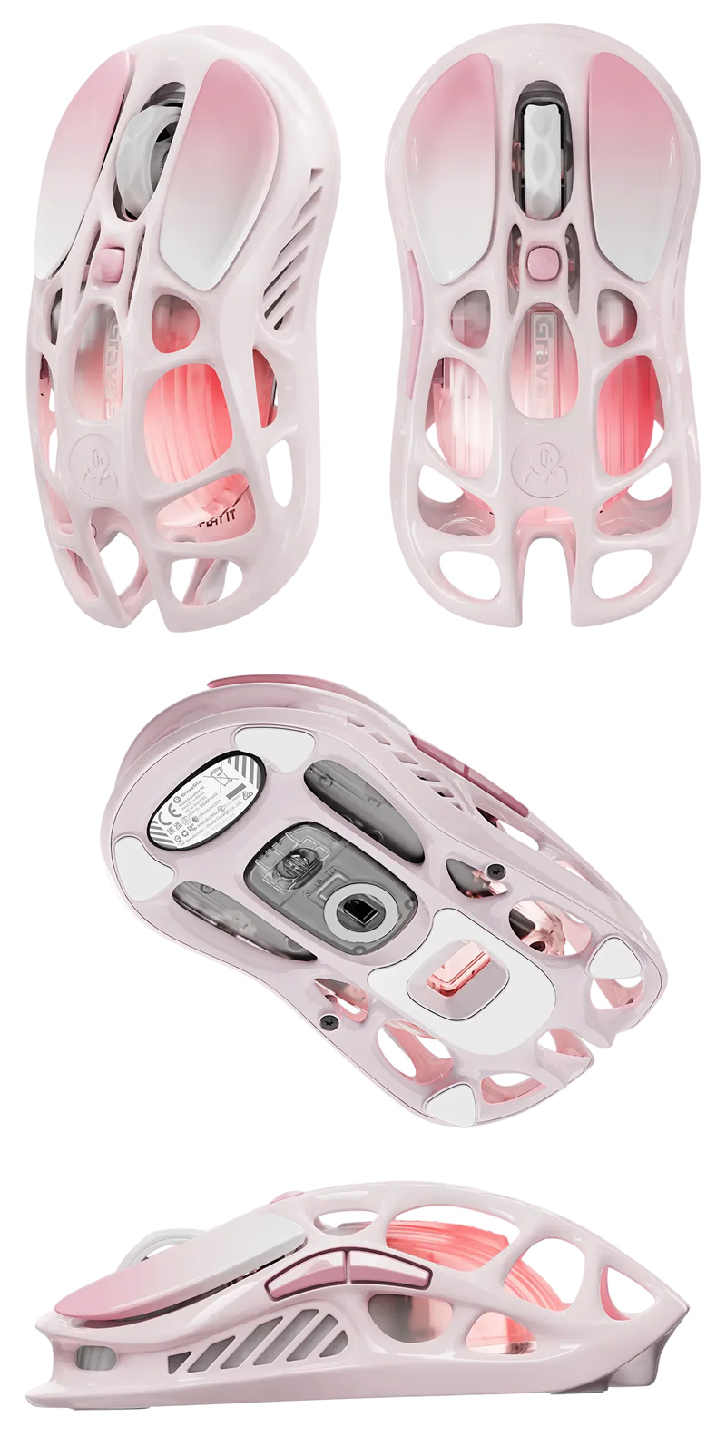 1、異骨鏤空設計:金屬骨架結構,不僅是視覺饗宴,更是減少手握時的悶熱與濕氣感,長時間打遊戲也備感舒適