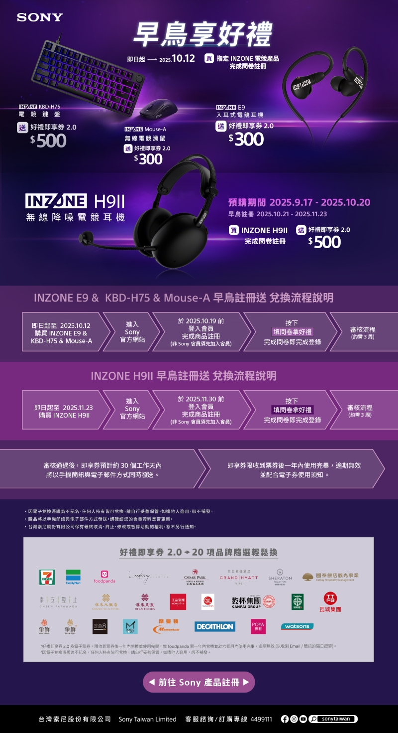 | 電競耳機 | 原廠保固一年 | INZONE H9 INZONE H7 INZONE H5 INZONE H3 INZONE Buds | |