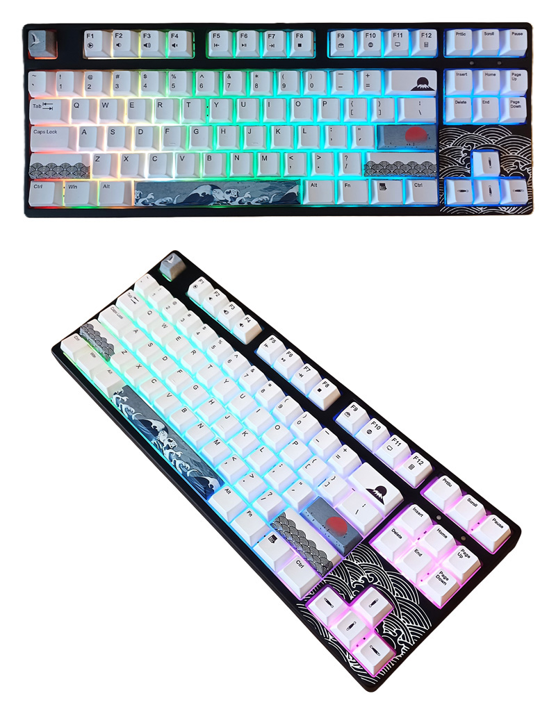KBParadise 新一代 VX80 TKL 80% 尺寸87鍵機械式鍵盤,精簡型尺寸薄邊框設計,搭配熱昇華浮世繪PBT鍵帽,三層降噪減震結構,USB Type-C 接頭與接線分離設計,1680萬色 RGB LED 背光,PCB熱插拔設計。
