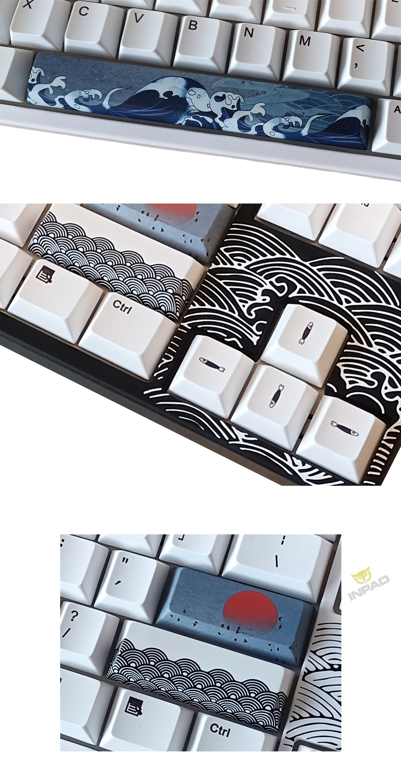 VX80 使用耐磨的PBT原廠高度鍵帽 ,並以熱昇華技術製造,熱昇華轉燙出來的成品能凸顯圖案的細節且色彩鮮艷,觸感柔軟,近年來常被作為客製化圖案的製作方式。