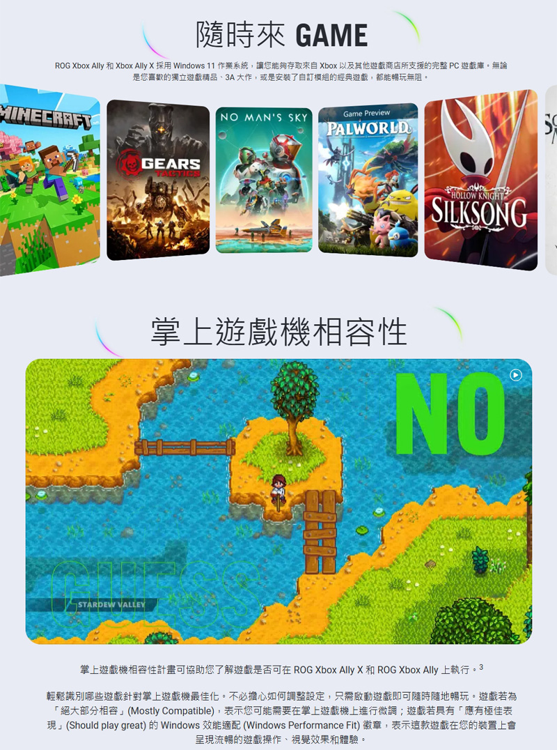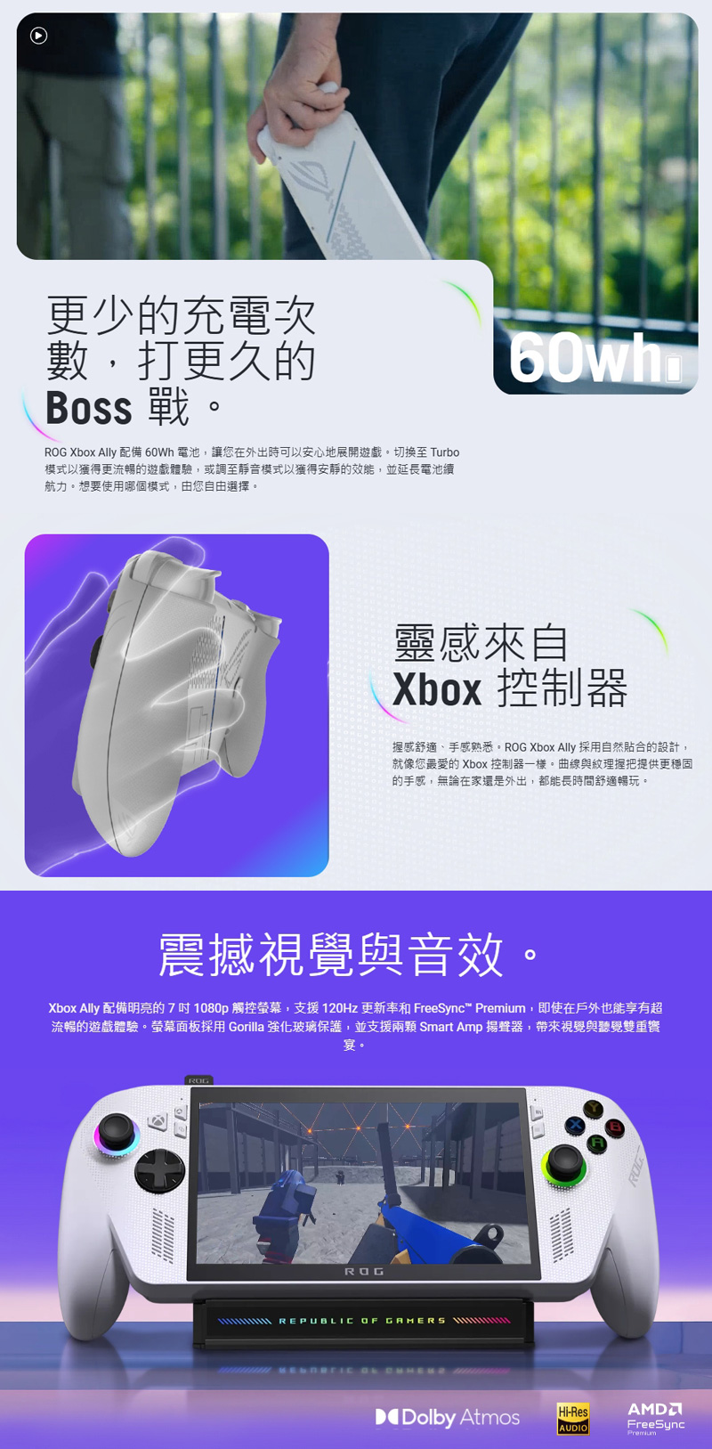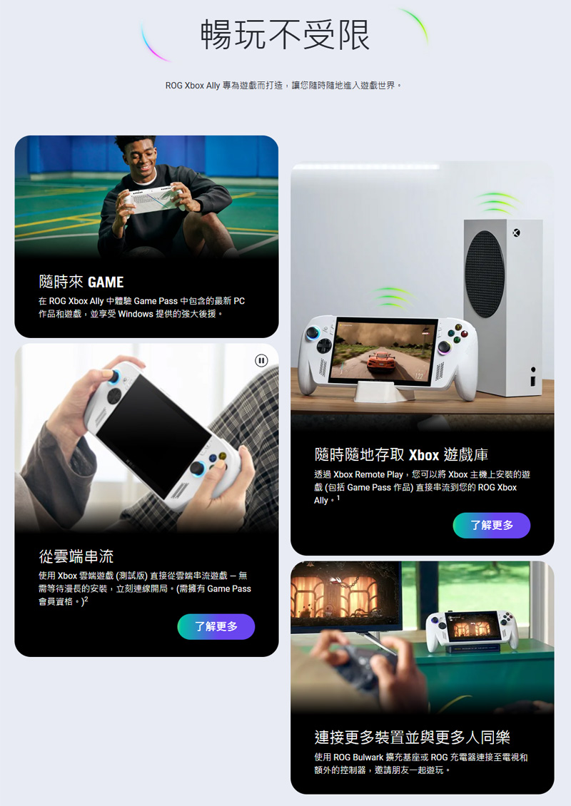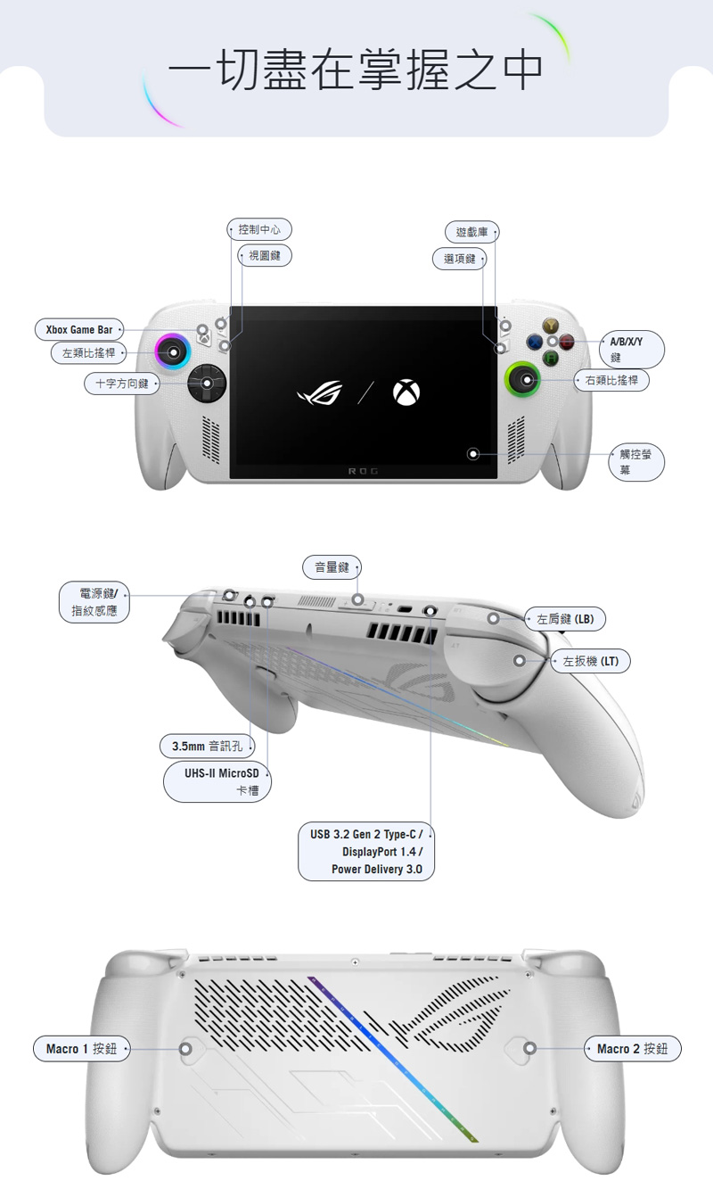 XBOX 遊戲與 ROG 設計在 ROG Xbox Ally 中相遇,結合輕巧便攜與強大效能,讓您隨時隨地暢玩 3A 遊戲大作。