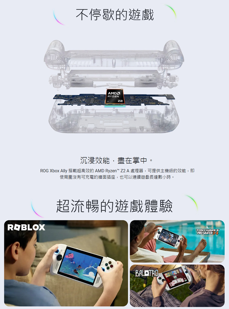 ROG Xbox Ally 搭載 AMD Ryzen Z2 A 處理器,可提供主機級的效能和絕佳的電池續航力。