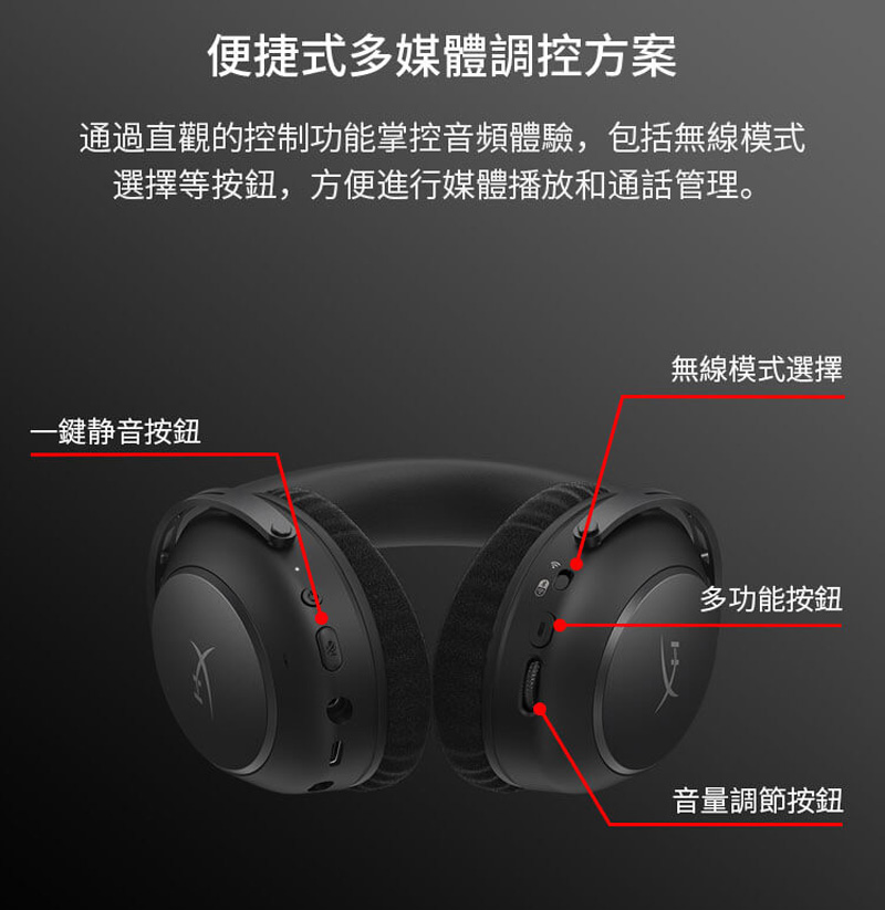 音訊控制: | 音量調節、多功能按鍵、麥克風靜音/監聽開關、無線模式切換 |