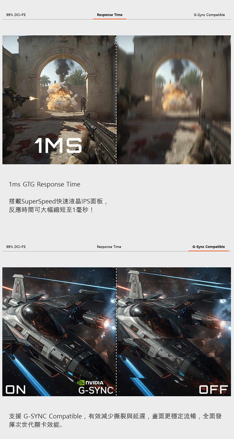 真實反應時間(Tr+Tf ) | 1ms GTG |