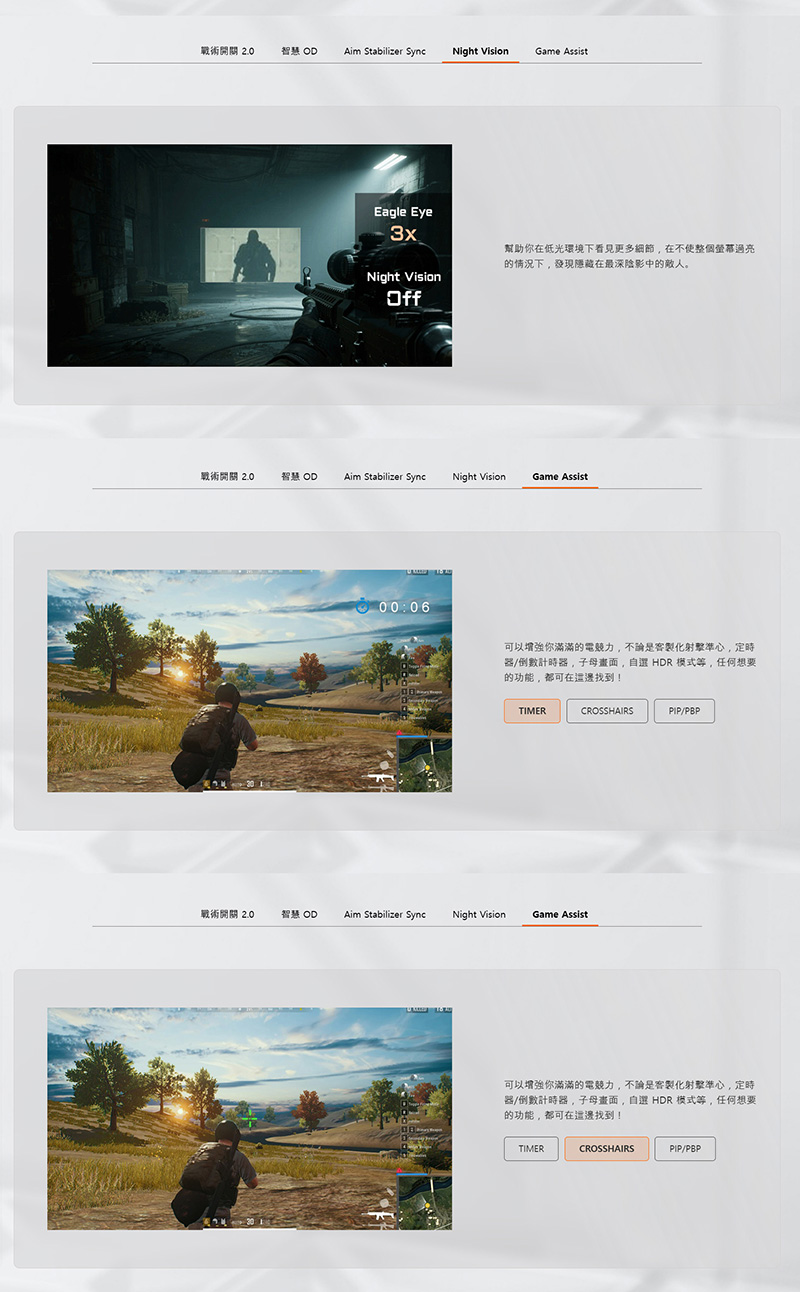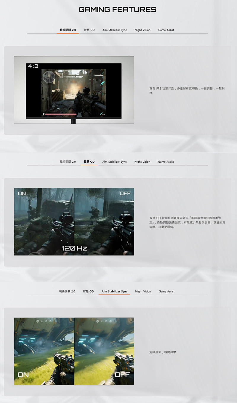 9、遊戲模式,戰術開關2.0、智慧OD、全新Aim Stabilizer Sync