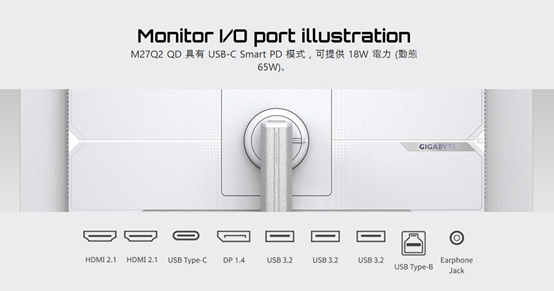 10、M27Q2 QD ICE 具有 USB-C Smart PD 模式,可提供 18W 電力 (動態65W)
