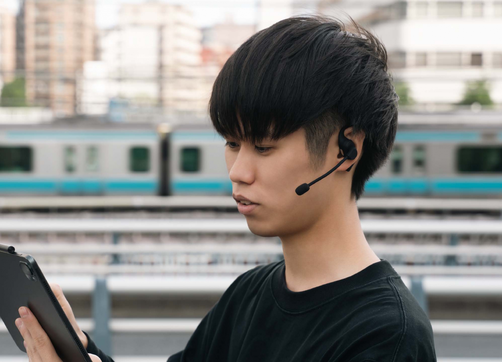 可僅使用 左耳(L) 或 右耳(R) 任一側耳機,單耳使用時,左右聲道的音訊會自動合併,從單側耳機播放。由於採用開放式耳機設計,不會造成明顯的耳道封閉感,即使單耳佩戴,也不會像傳統入耳式耳機那樣產生強烈違和感。 在長時間會議或通話時,您還可以左右耳交替使用,在為另一側充電的同時繼續使用,非常便利。此外,即便是單耳使用時,也可以裝上指向型長桿麥克風,就像對講機一樣使用,兼顧舒適與實用性。