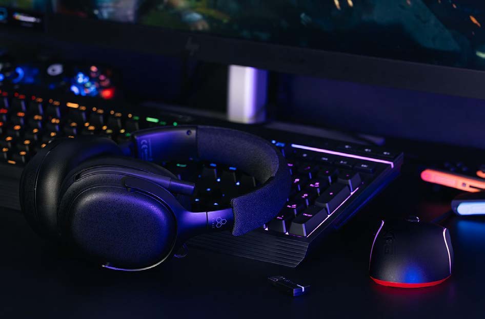 在長時間遊戲對戰中,耳機的佩戴舒適度絕對是影響表現的關鍵因素之一。 本產品透過反覆試作與精密調整,實現了舒適度與穩定性兼備的貼合與重量平衡,有效減輕頭頂的負擔,即使長時間遊玩也能保持輕盈舒適。 此外,耳罩部分採用多向可動的服貼設計,能靈活貼合各種頭型,確保每位玩家都能找到最適合的佩戴方式。我們特別推薦將耳罩稍微向後傾斜的配戴角度,能減少耳後聲音外洩、增強沉浸感,同時進一步降低側夾壓力,帶來更自在的遊戲體驗。頭帶部分選用高透氣性的頂級網布材質,即使在高強度、長時間的對戰中,也能有效抑制悶熱感,讓你 始終保持最佳狀態,專注迎接每一場挑戰。