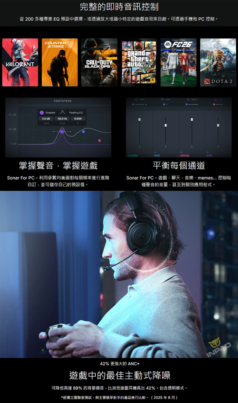 4、遊戲領域頂尖主動降噪技術, 降噪效能提升高達42%
