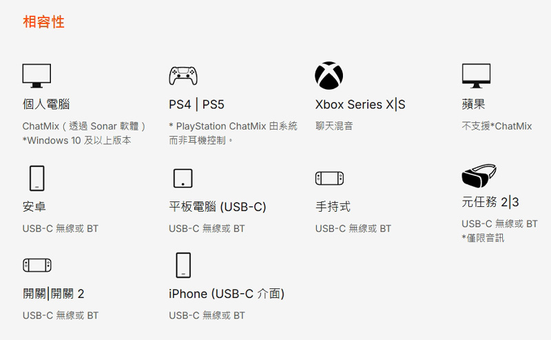 支援系統: | Arctis應用程式:iPhone (iOS 15.6) 與 Android (Android 9) GG + 引擎:Windows 8.1 以上版本、Mac OS 10.13 以上版本 GG + Sonar 音訊軟體套件:Windows 10 及以上版本(PC 版 ChatMix 必須安裝) |