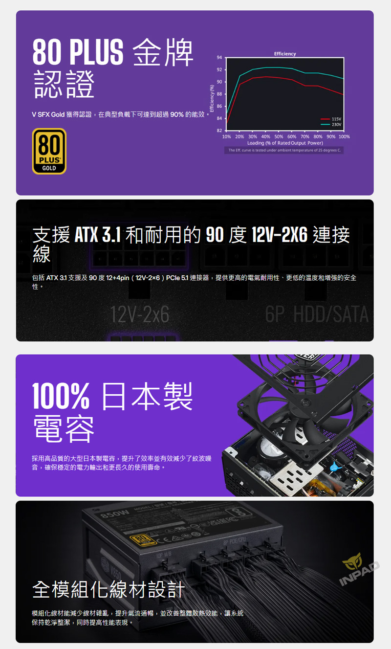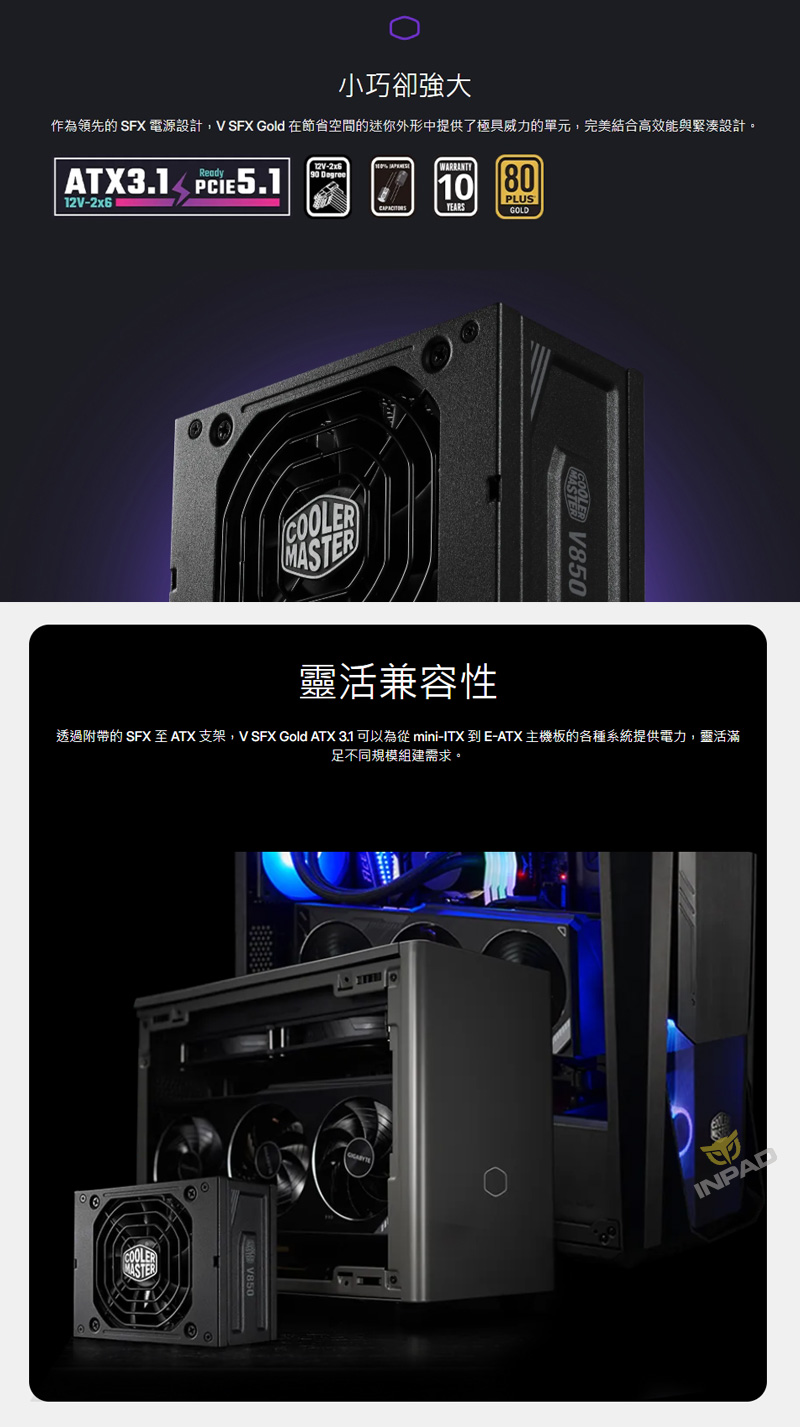 品名: | CoolerMaster V SFX 850 全模組化電源供應器ATX3.1 金牌 |