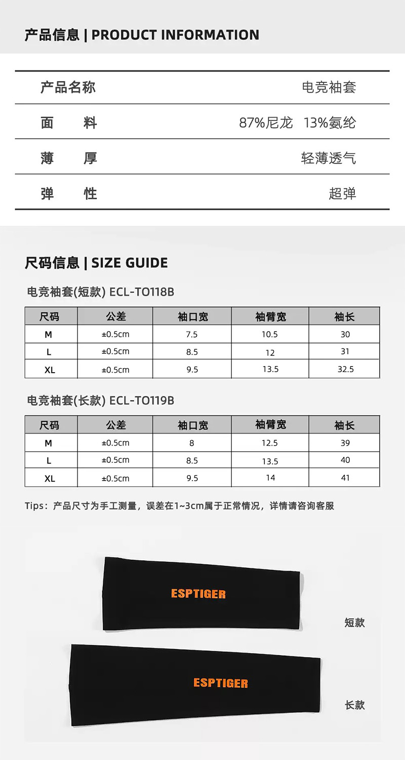 虎符電競 無痕袖口冰絲電競袖套 長版/短版 M/L/XL