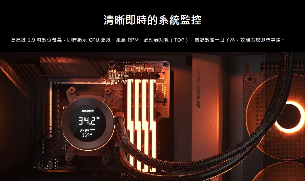 4、1.9 吋數位顯示螢幕,提供即時 CPU 溫度、風扇轉速與功耗監控