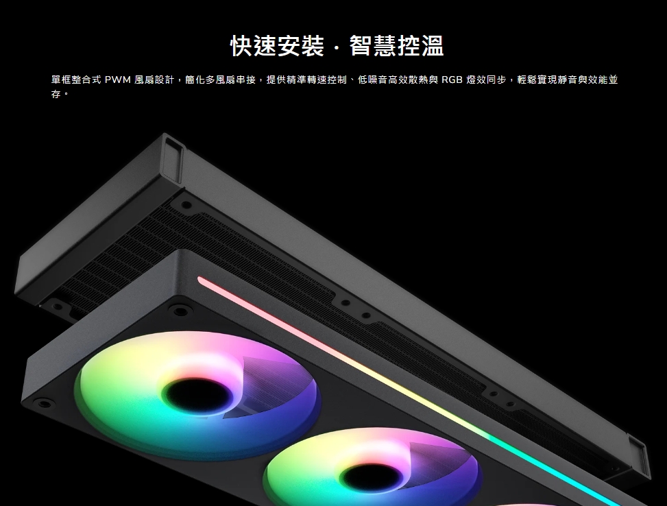 5、搭載單框整合式 PWM 風扇,簡化安裝流程,提升散熱效能與 RGB 表現