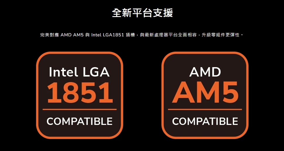 1、支援 AMD AM5 與 Intel LGA1851 插槽,完整對應最新平台
