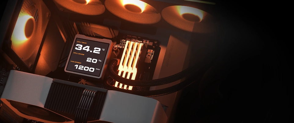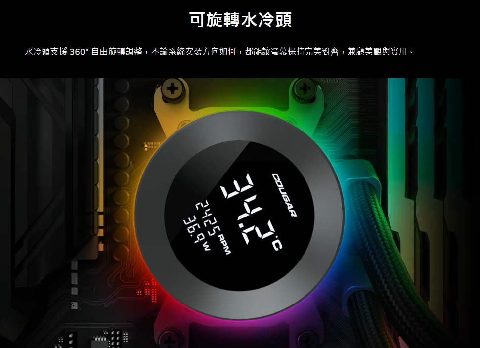 3、360° 自由旋轉水冷頭,顯示方向完美對齊,不受安裝角度限制