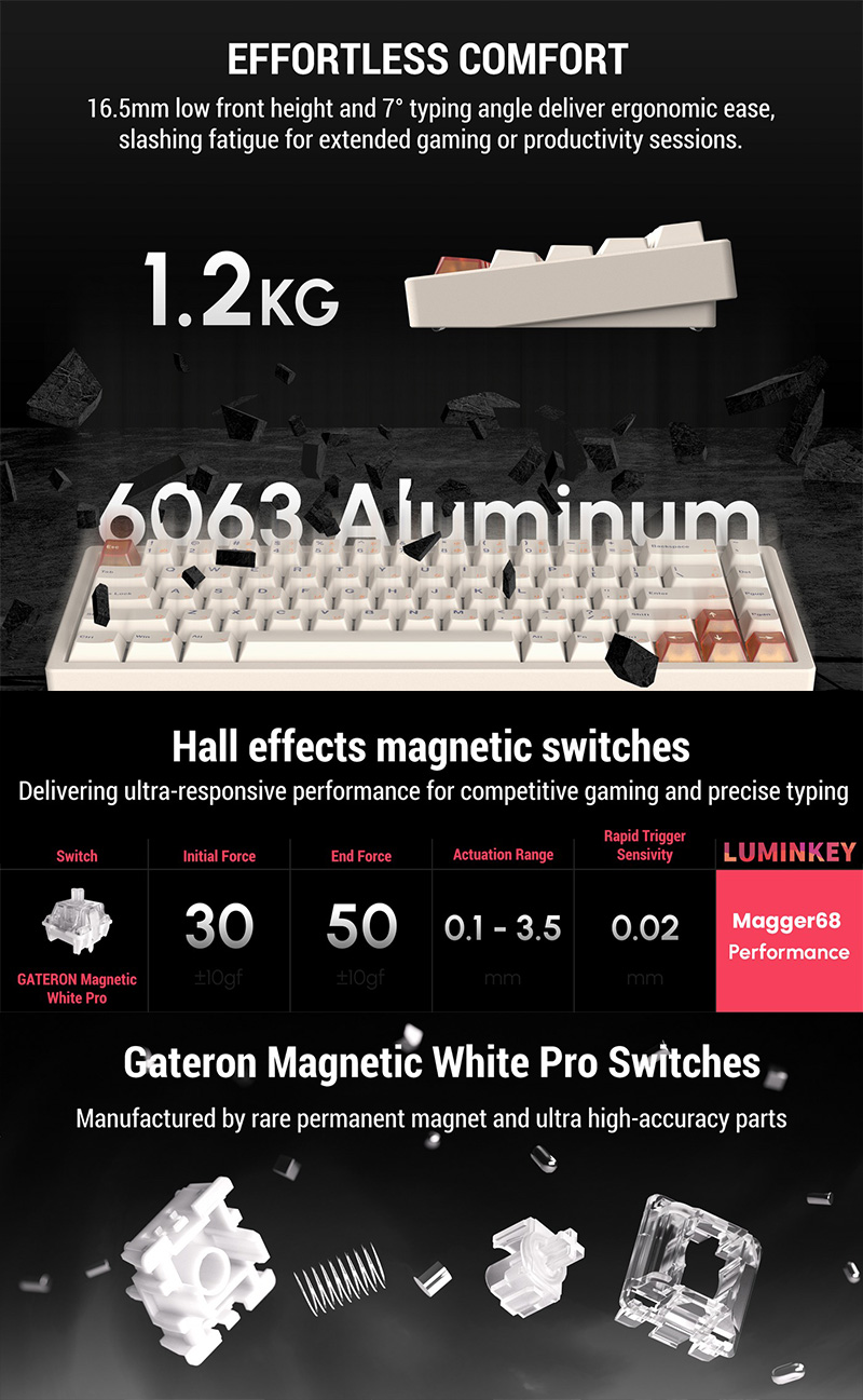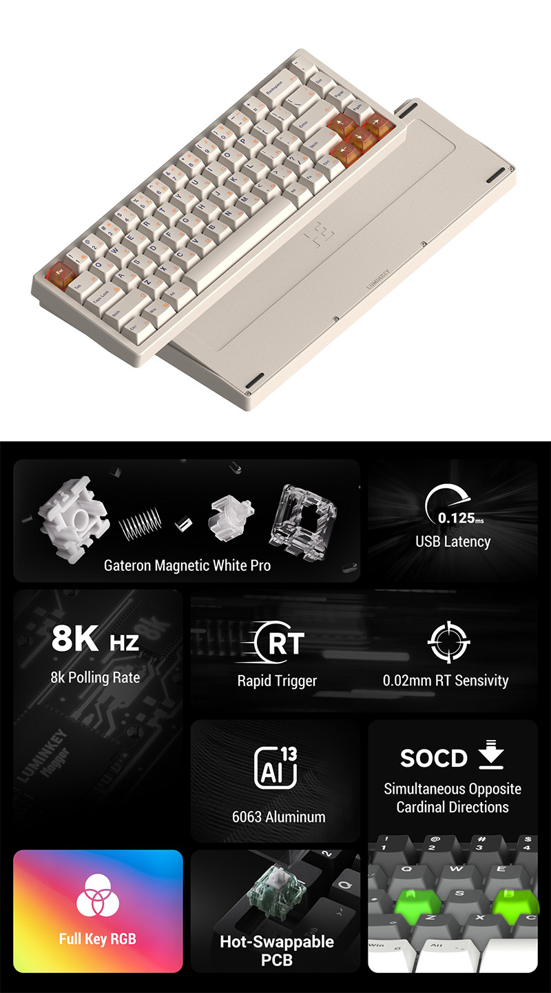 Luminkey Magger 68 HE 熱插拔磁軸鍵盤 Performance Milky White
