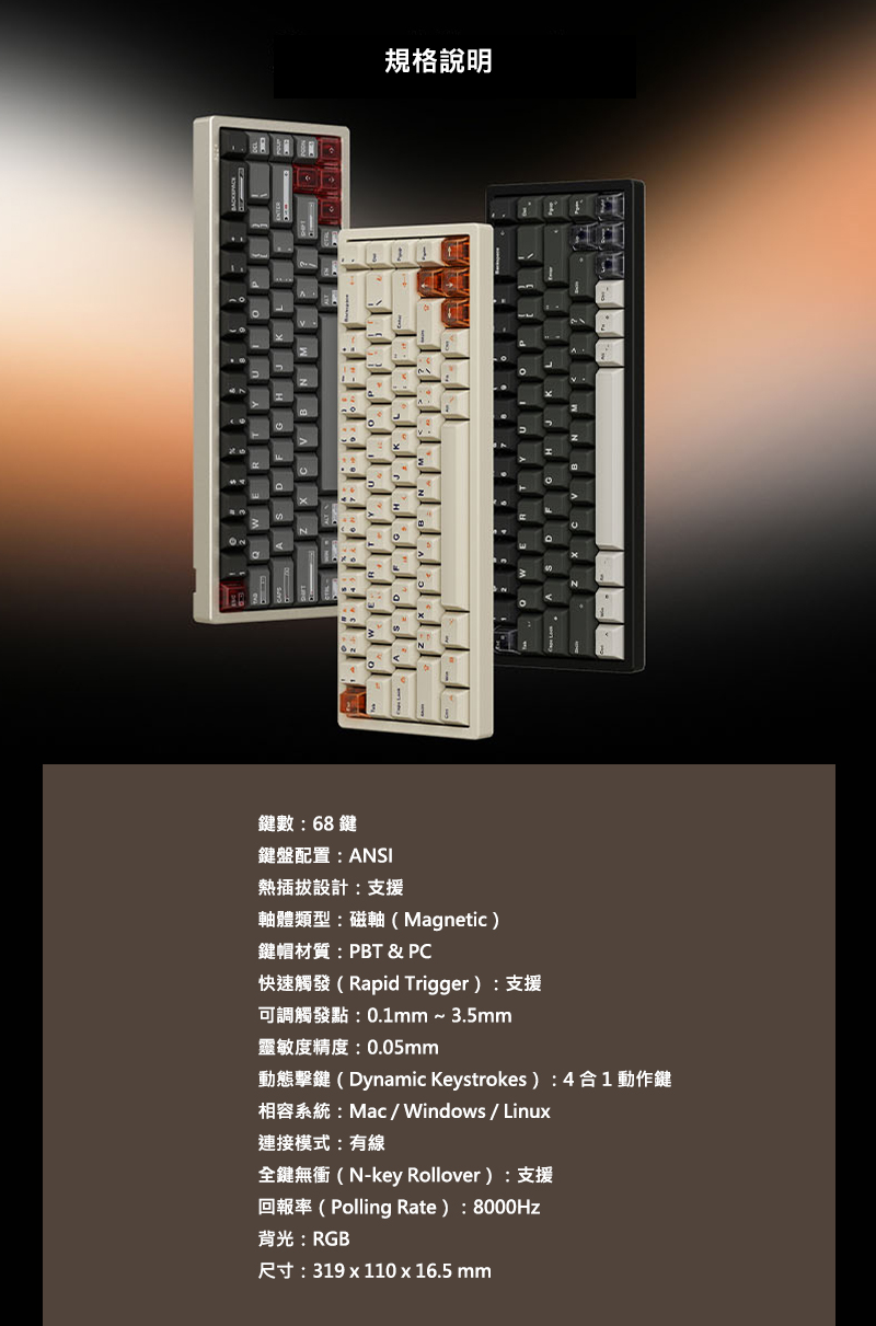 | 品名: | Luminkey Magger 68 熱插拔磁軸鍵盤 |