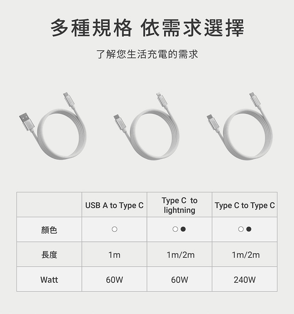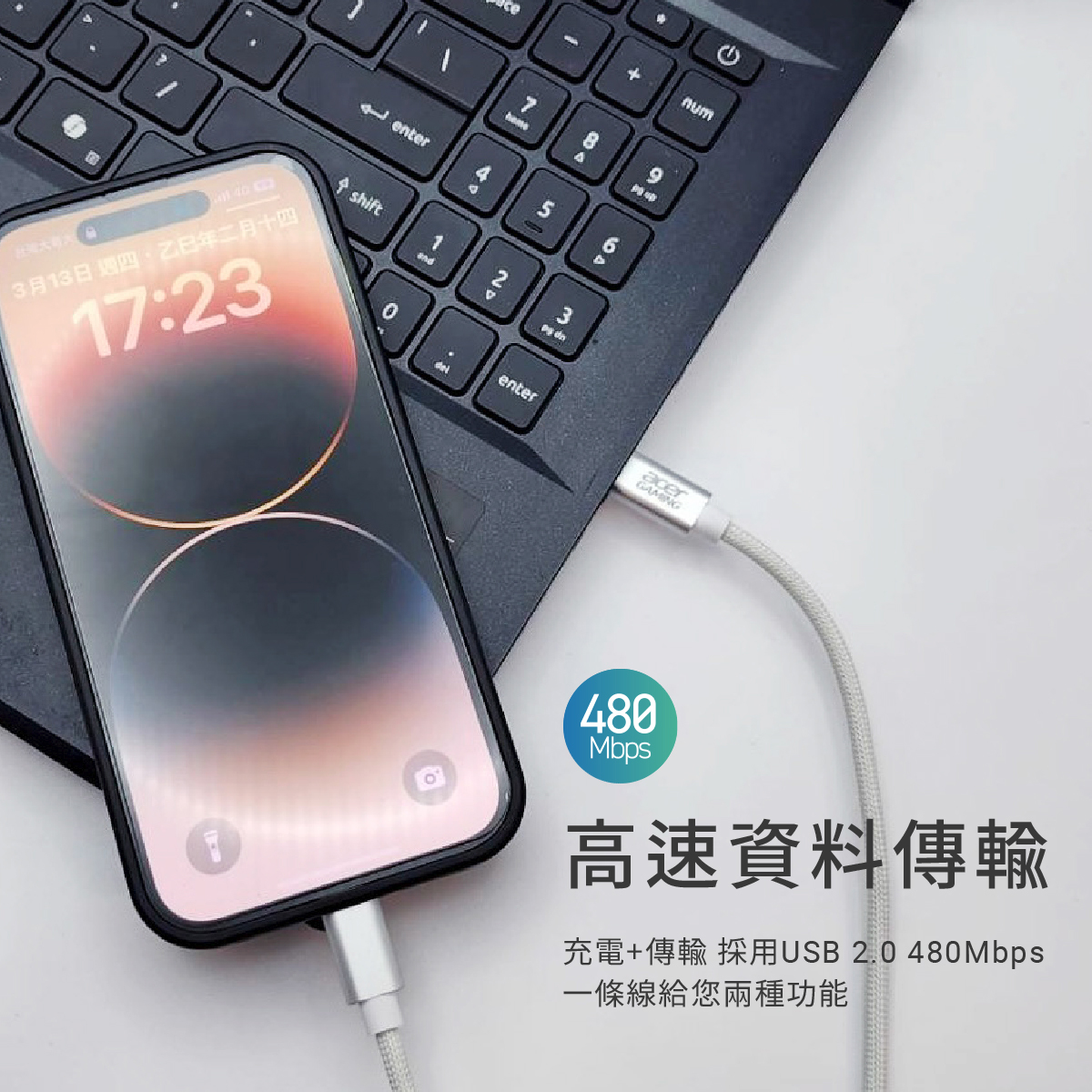 AcerGaming USB-A to USB-C 珪膠編織線 1m 白色