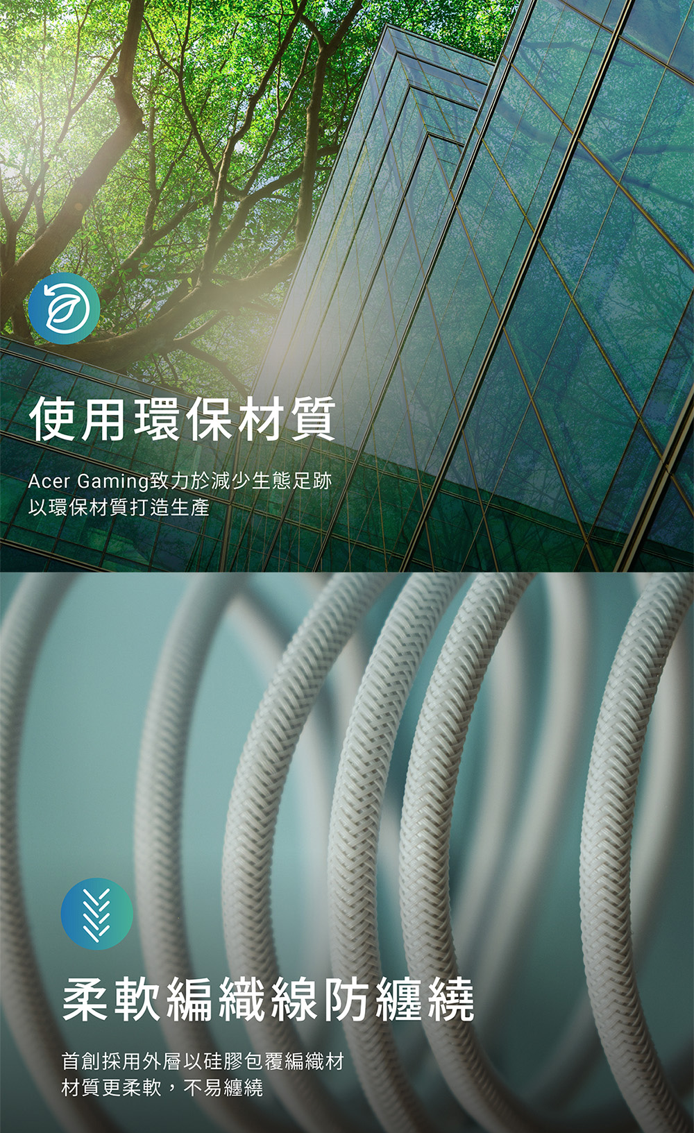 AcerGaming USB-C to USB-C 珪膠編織線 1.2m/2.0m 黑色白色