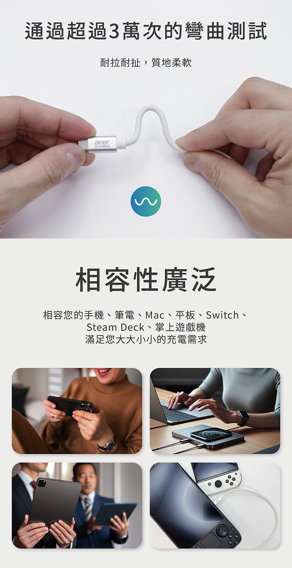 品名: | AcerGaming USB-C to USB-C 珪膠編織線 |
