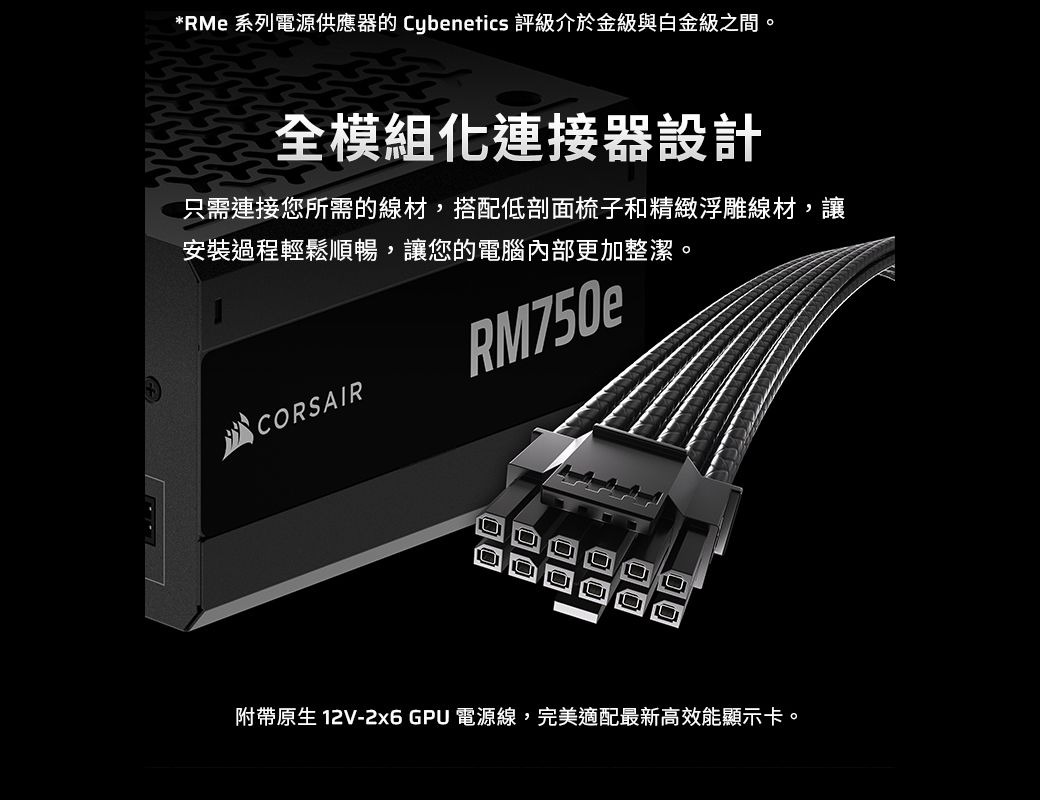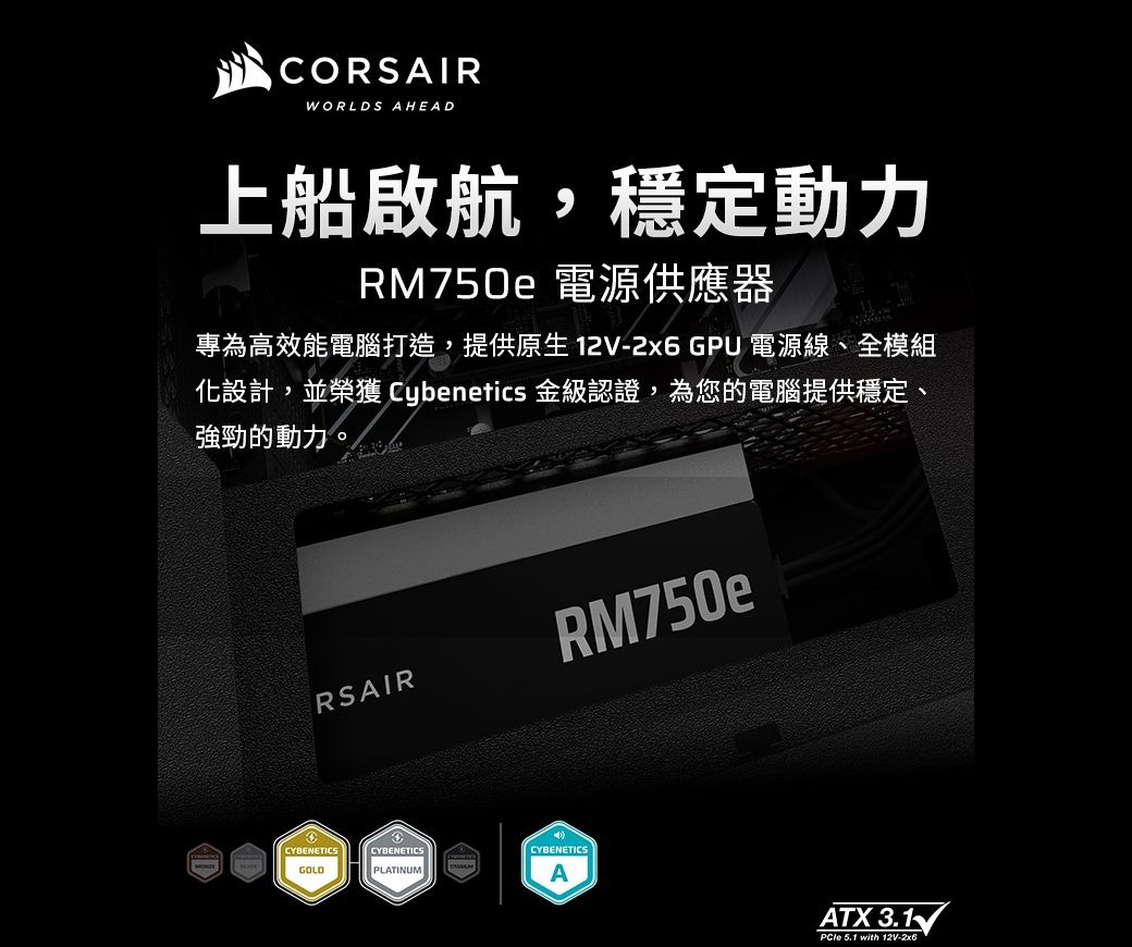 CORSAIR 海盜船 750W RM750e 全模電源供應器金牌 ATX3.1