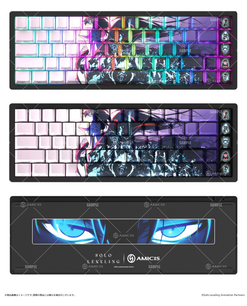 鍵盤正面大膽融入了動畫《我獨自升級第二季》的視覺設計。