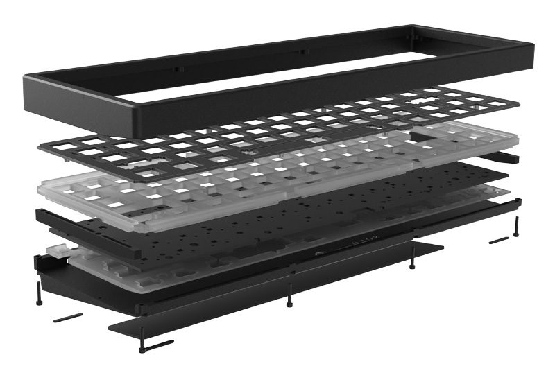 透過採用三明治結構與FR4 材質的內建定位板為產品提供了優異的耐久性,在最大限度減少震動的同時,提供清晰而舒適的輸入音效。