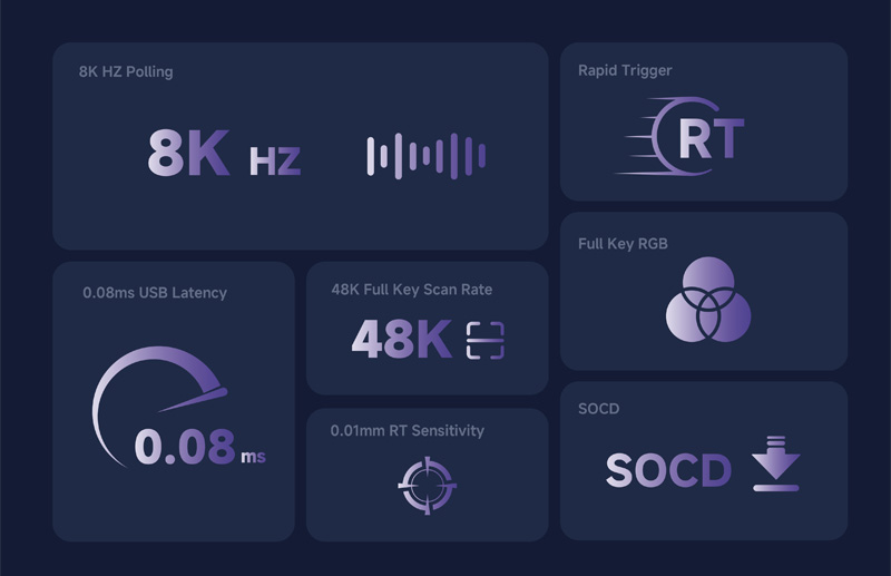 輪詢率高達8,000Hz,實現比主流遊戲鍵盤快8 倍的反應速度,讓每一次操作幾乎瞬間傳達,為勝利加速。