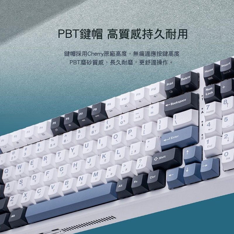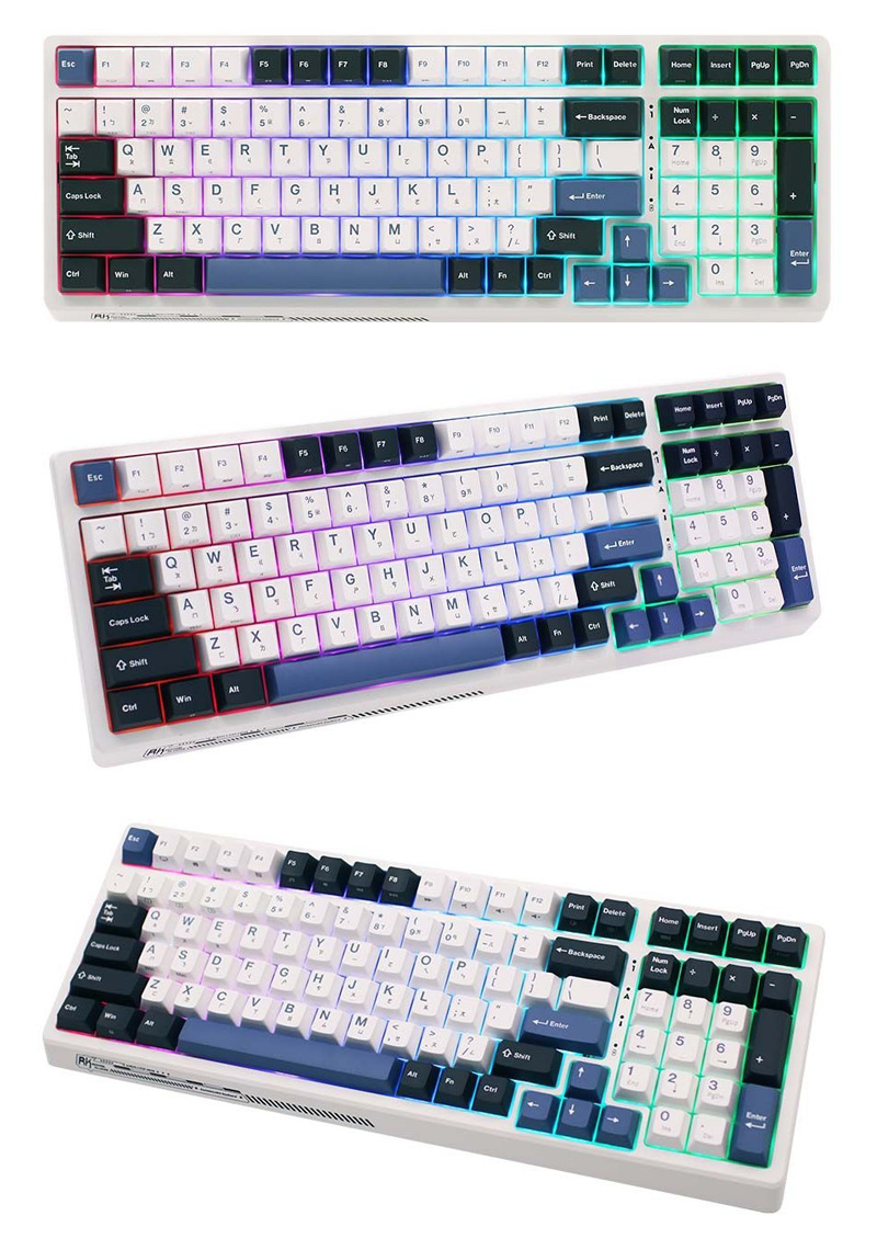 RK G98 藍色潮汐,採用深藍、淺藍、純白三種顏色PBT鍵帽,營造出不同時間潮汐的樣貌。