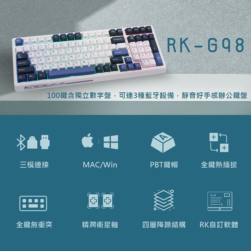 ROYAL KLUDGE G98 98% 三模無線機械鍵盤RGB 藍色潮汐 熱插拔 中文