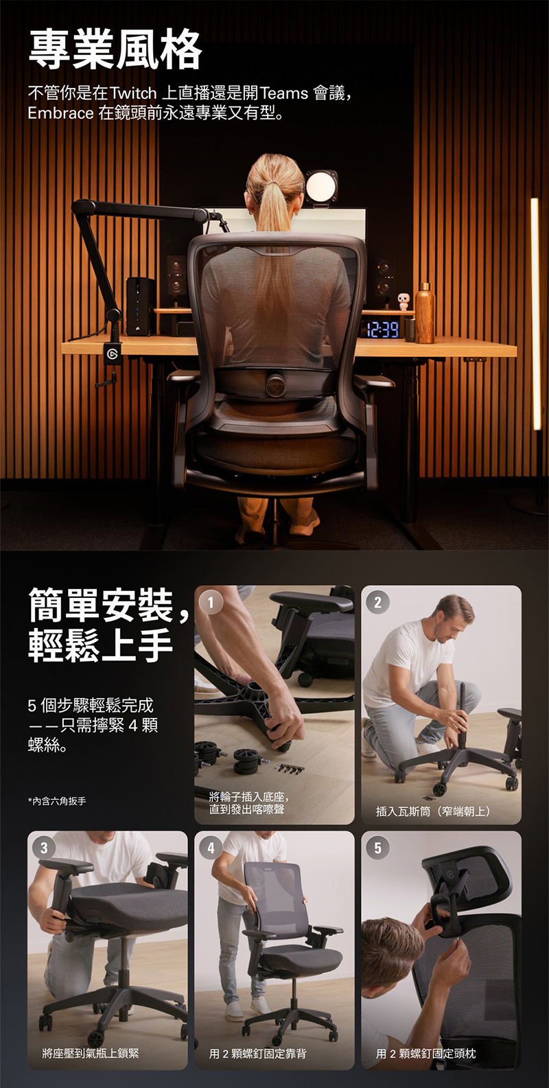 | 品名: | Corsair Gaming 海盜船電競 Elgato Embrace 人體工學椅 |