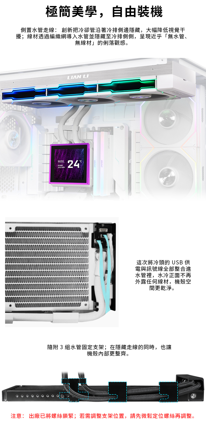 4、側置冷管搭配全隱藏佈線,打造零線材正面視覺