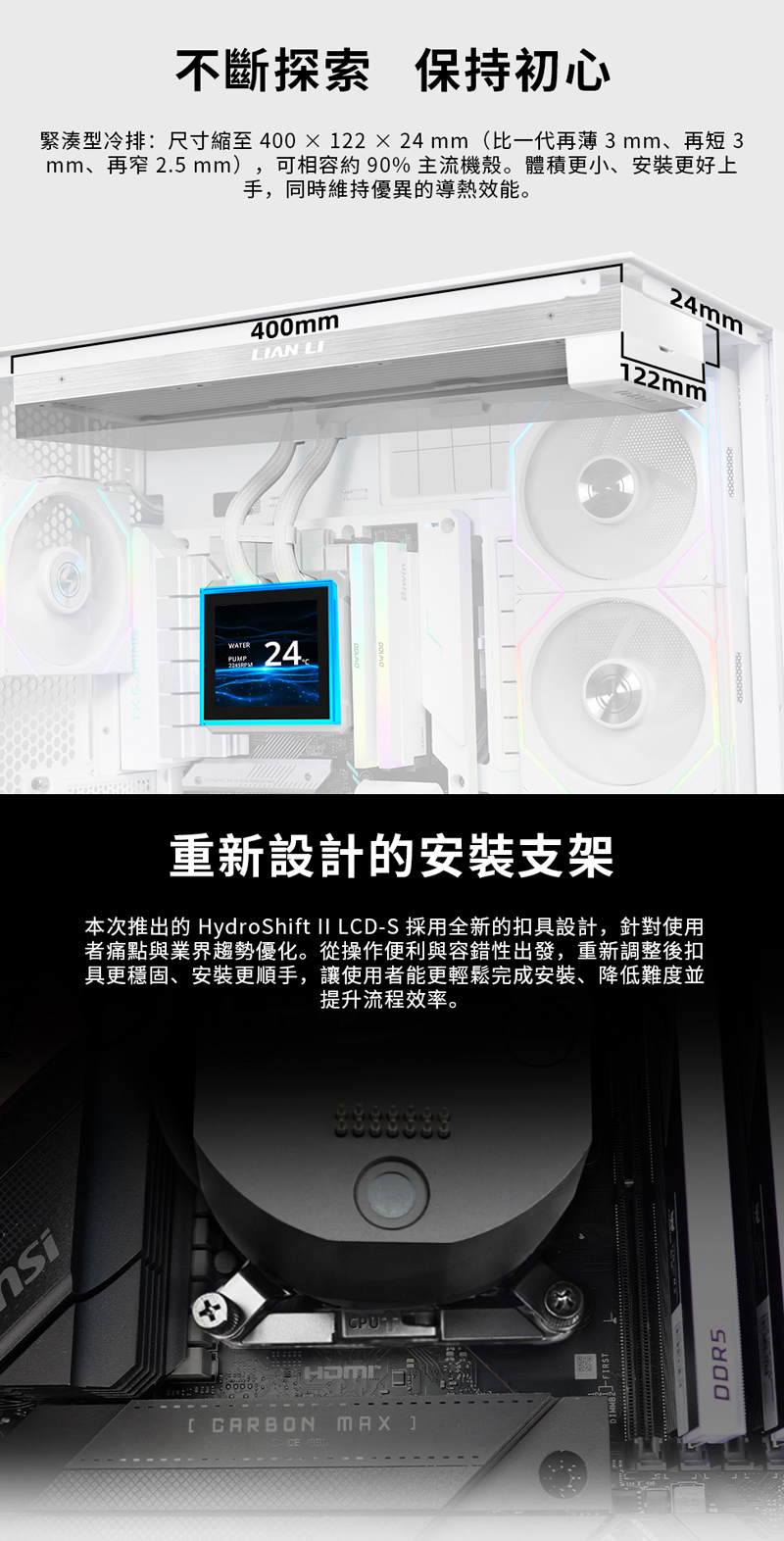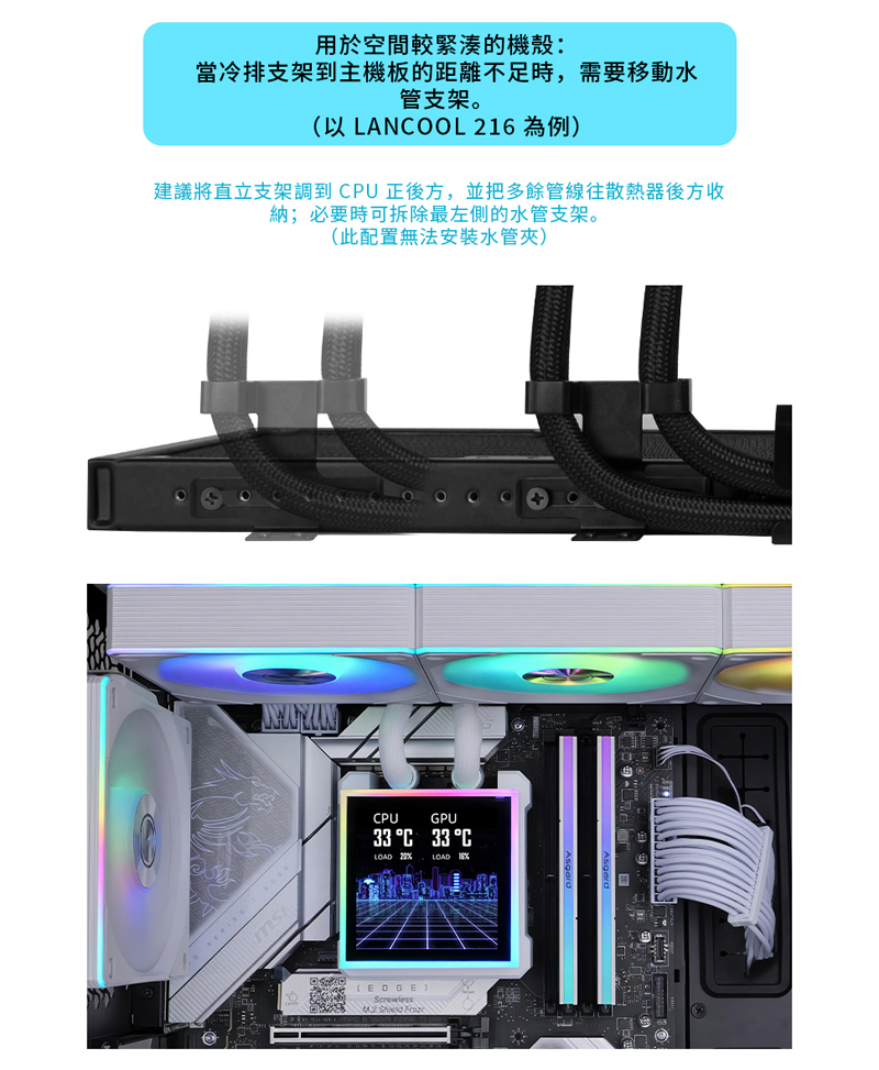 2、超薄 360 mm 水冷排,支援更多機殼安裝