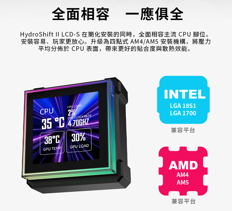 | CPU腳位: | Intel:LGA1700 LGA1851 AMD:AM4 AM5 |