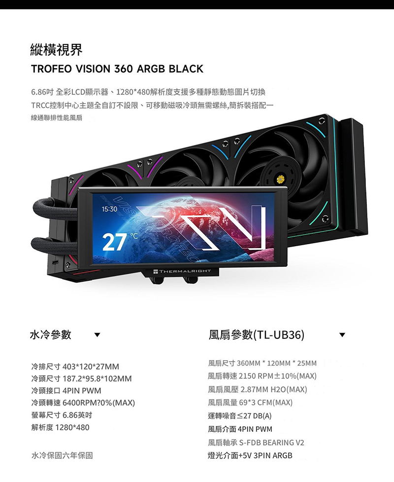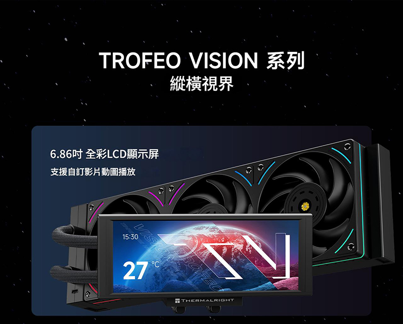 Thermalright 利民 Trofeo Vision 360 ARGB 一體式水冷散熱器 6.87吋螢幕 黑色白色