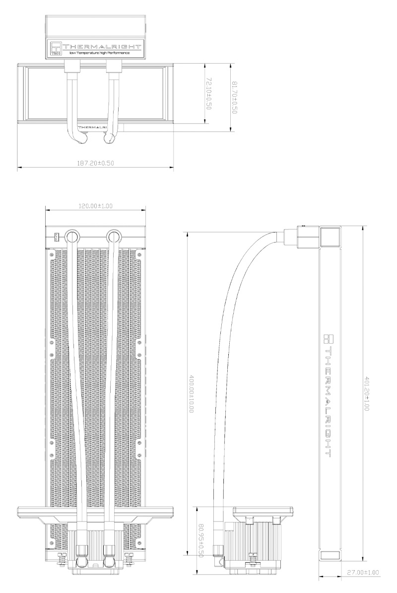 | 水冷排尺寸(長 x 寬 x 高): | 403 x 120 x 27 mm 冷排+風扇:厚55mm |