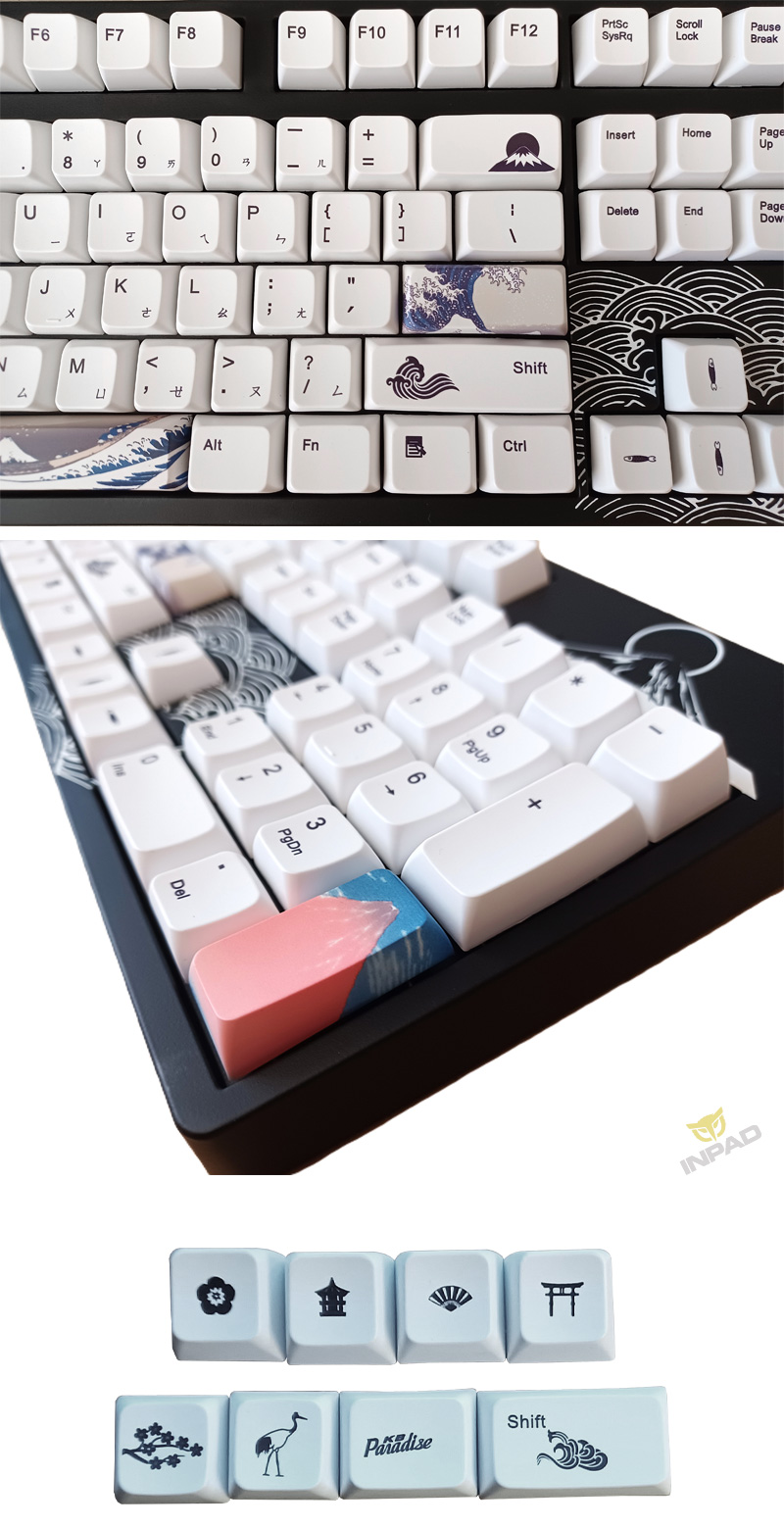 4、PBT二色鍵帽,shift鍵為雷雕,五面熱昇華鍵帽(空白鍵 / ESC鍵 / 輸入鍵)