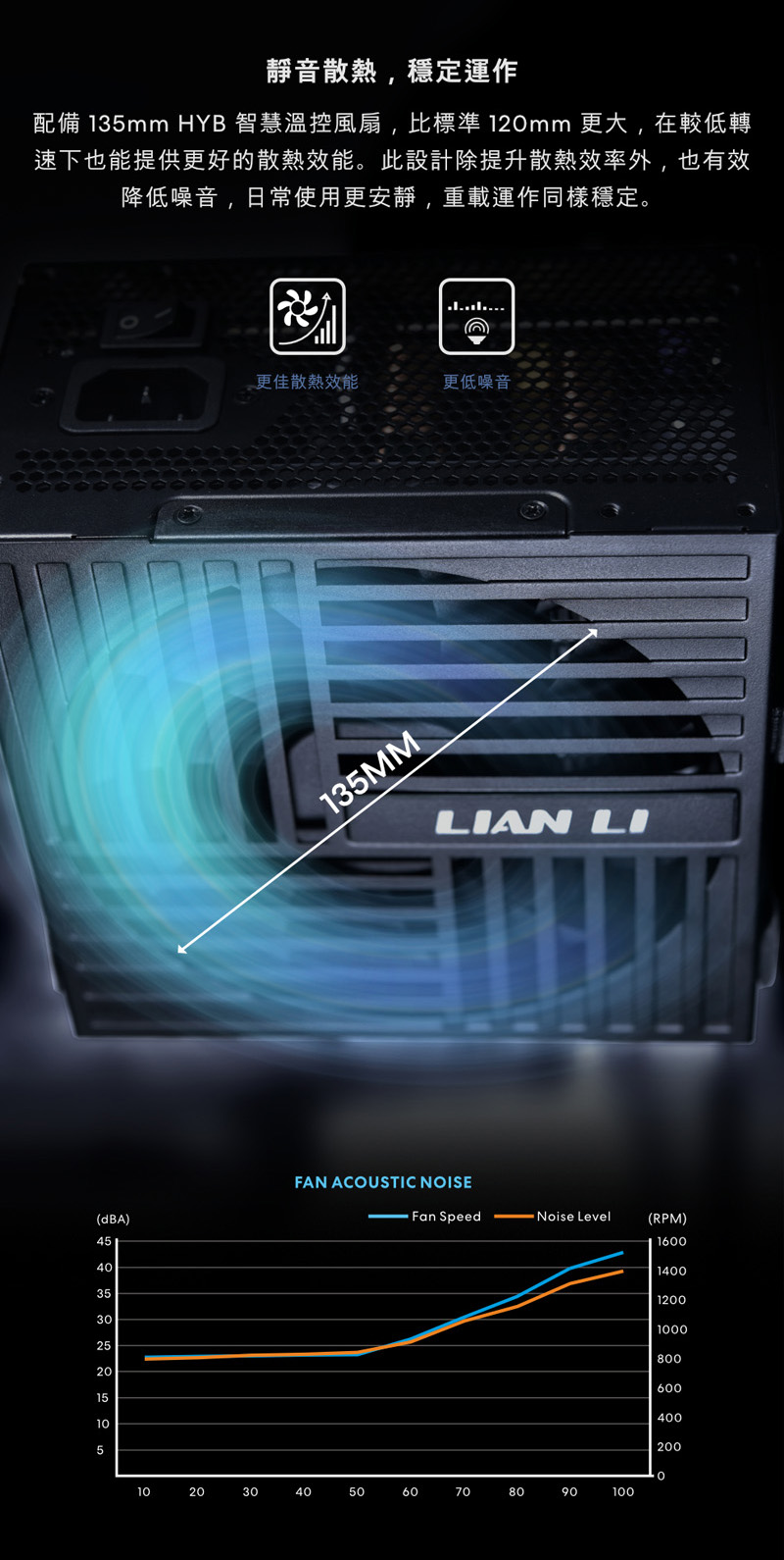 2、135 mm HYB智慧溫控風扇,實現安靜冷卻