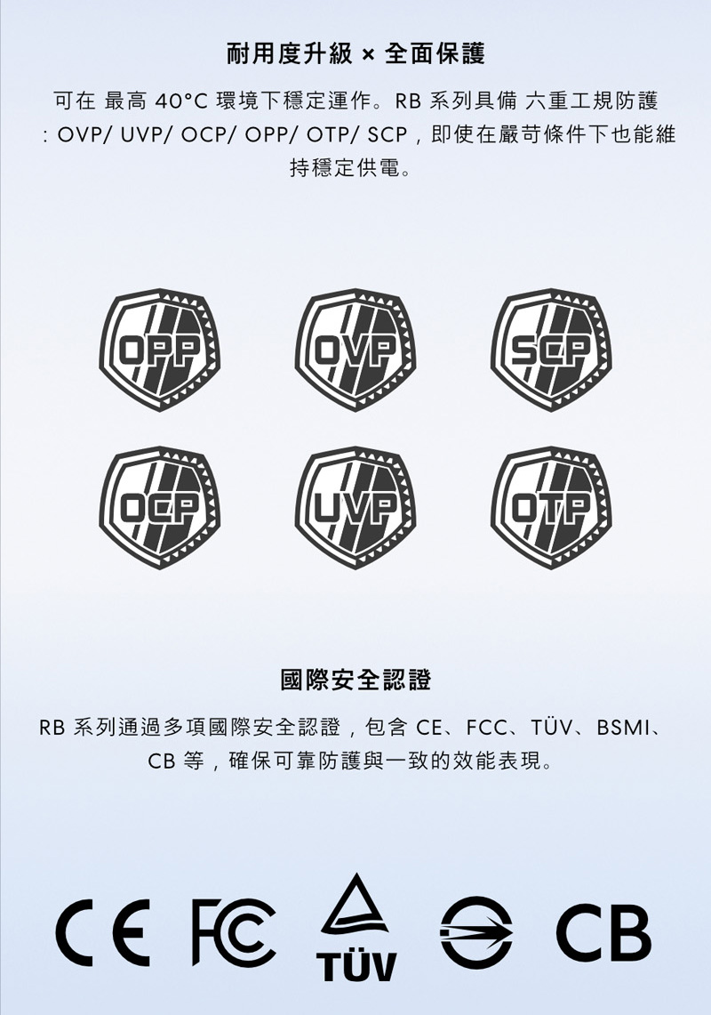 | 保護系統: | OPP,OVP,SCP,OCP,UVP,OTP |
