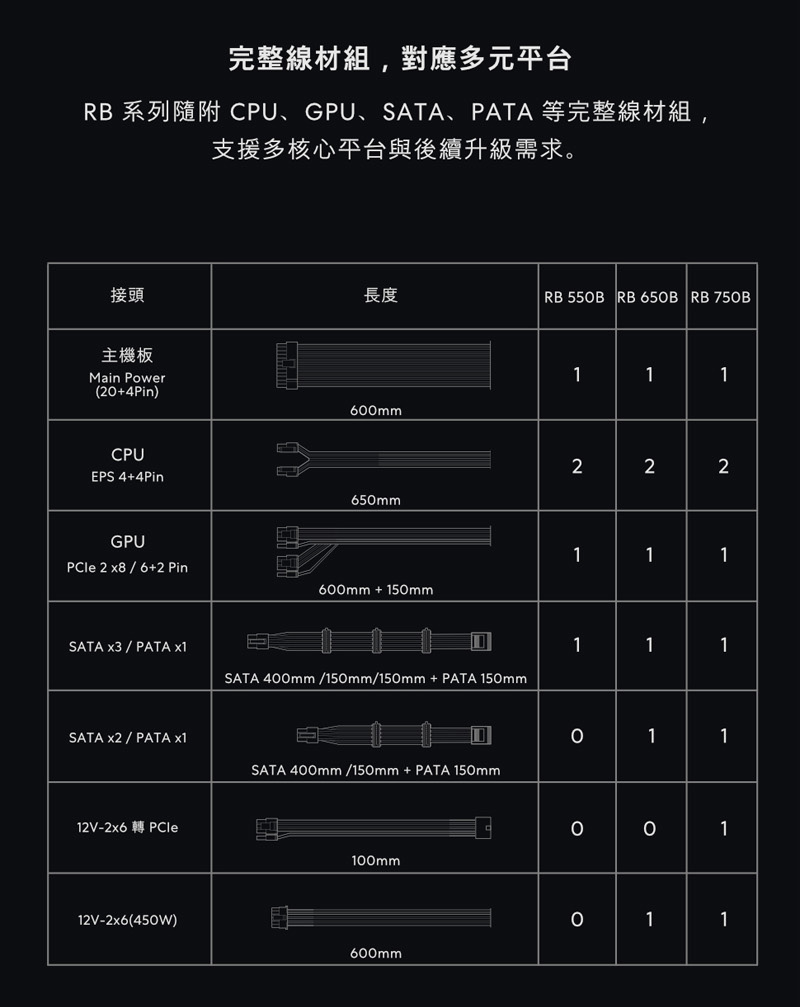 5、包括用於CPU、GPU、SATA和PATA連接的完整電纜組