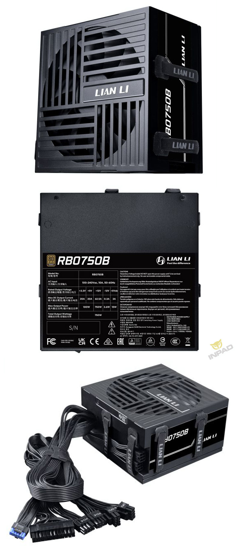 LIANLI 聯力 RB系列 750W 直出電源供應器 銅牌 黑色