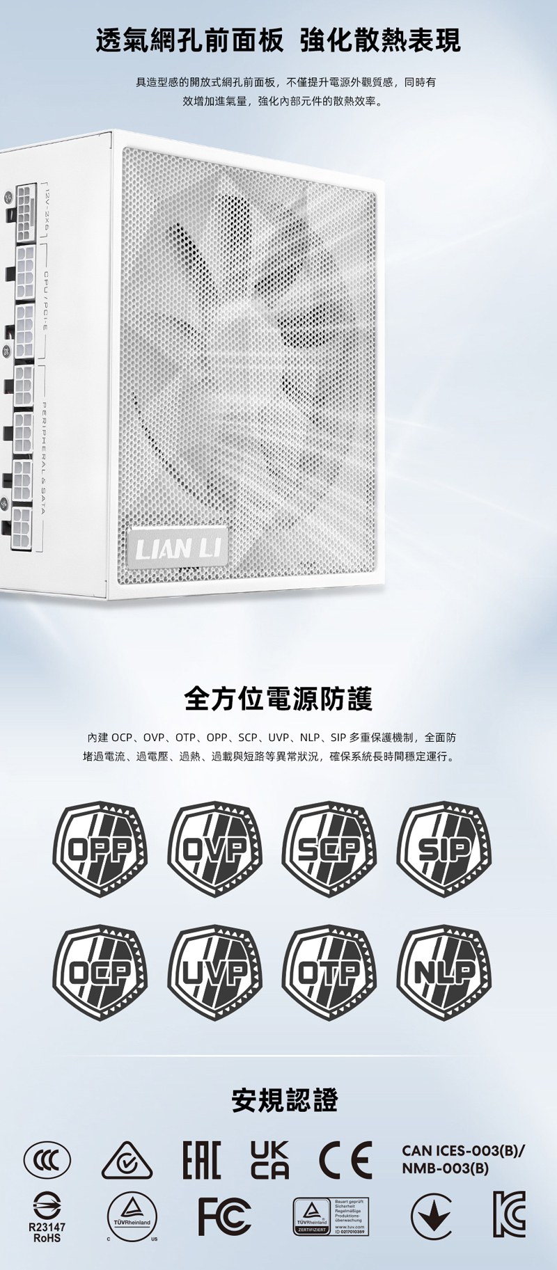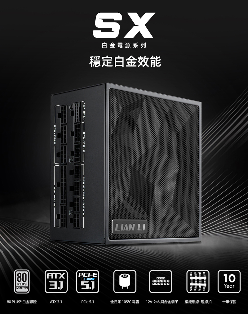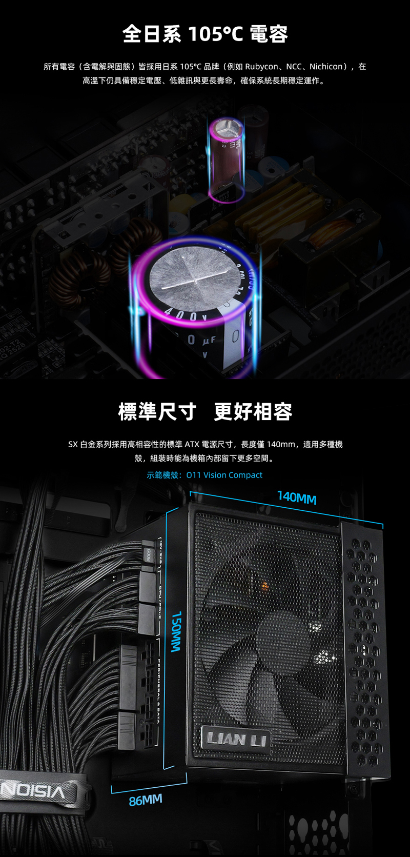 | 品名: | LIANLI 聯力 SX系列 850W 全模組電源供應器 白金牌 |