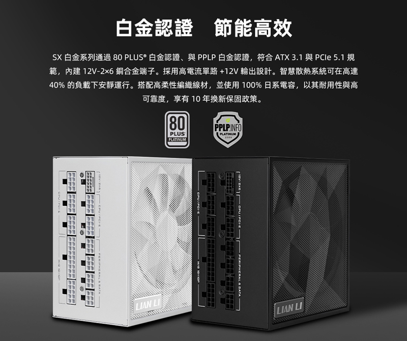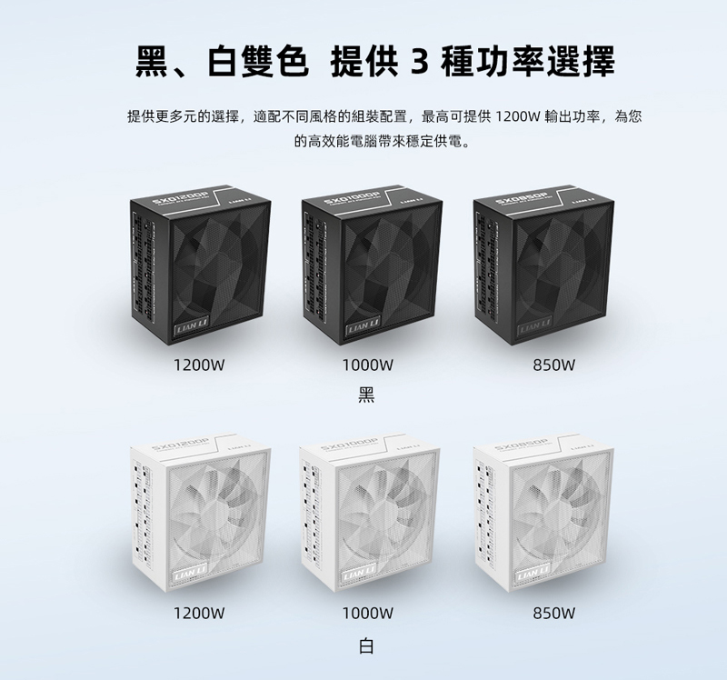 LIANLI 聯力 SX系列 850W 全模組電源供應器 白金牌 黑色/白色